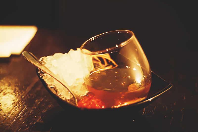 This one fuses tequila, crema di cacao, Galliano, cream, cane sugar, tabasco, salt and honey perfectly. The glass was topped with caramel, a cinnamon stick, and a small smattering of Korean chilli threads. The fusion of milk and the spiciness of the Korean Chilli Flakes and tabasco worked perfectly together.